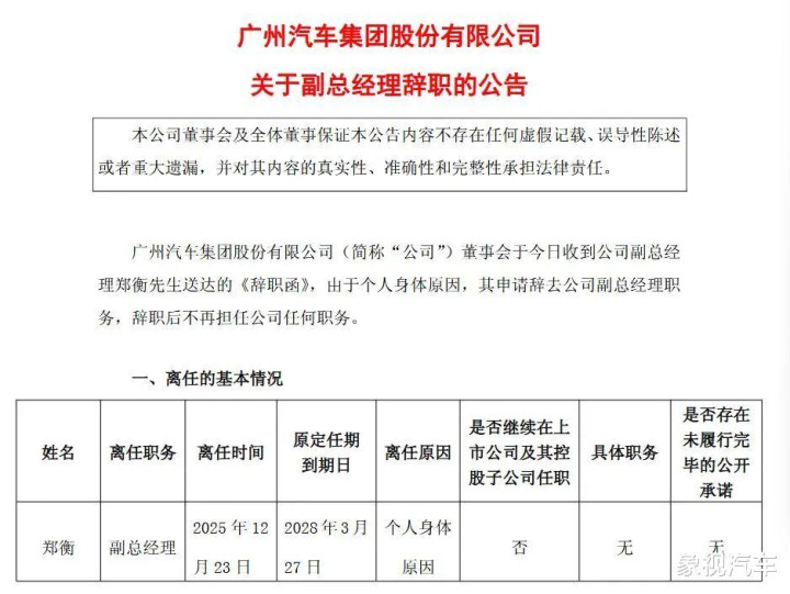 根据财新报道,广汽集团副总经理郑衡被相关部门带走,原因或与广汽集团最近数月开展的反腐行动有关。