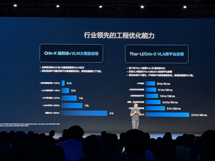 后续的推送节奏也是同步的,Orin 平台和 Thor 平台都是同步来推送。至于什么时候能拉开差异,我们现在肯定不会做这种差异化。但是随着下一步的迭代,如果我们在 INT4 的量化上有一些突破,那个时候可能会有一定差异,但是现在谈这个还为时尚早。